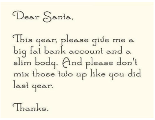 Read the following short letter/note and answer the questions. Choose the correct answer. Santa brings -------- or makes wishes come true on Christmas Eve.